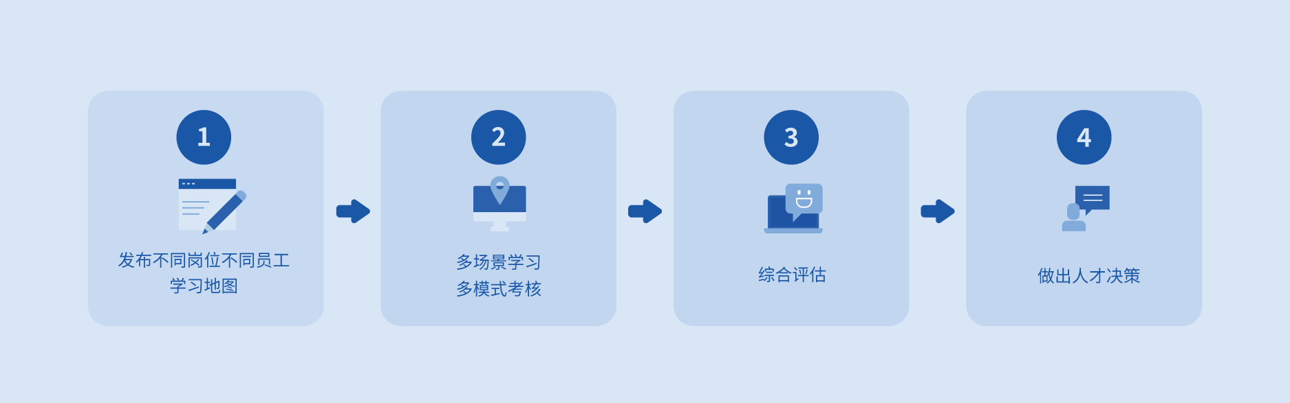 3.使用崗位技能矩陣與學習地圖的組合功能,繪制可視化的崗位成長路徑,員工在個人中心可直觀的顯示自己當前在什么位置,未來可以發(fā)展到什么位置、同時需要完成的學習地圖是什么,使員工的努力和成長可追溯。 整體形成“學練考評”閉環(huán)式管理,進一步強效化企業(yè)的人才培養(yǎng)效率。