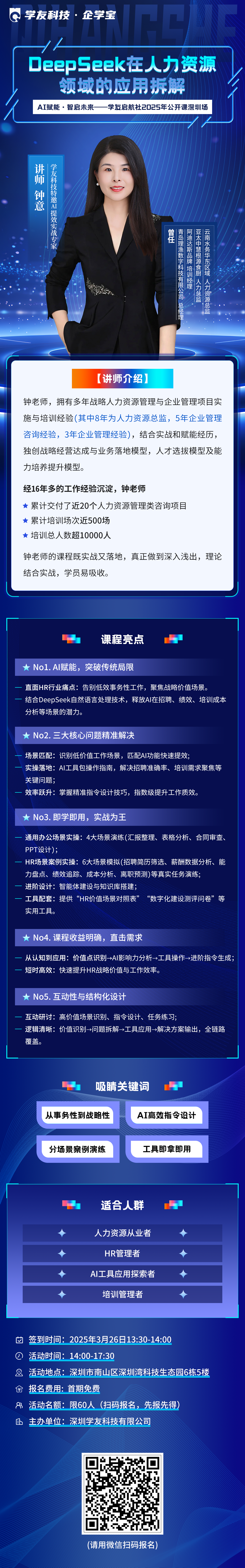 現(xiàn)場席位有限,先到先得,立即掃碼報名,解鎖AI驅(qū)動人才發(fā)展的關(guān)鍵邏輯!
