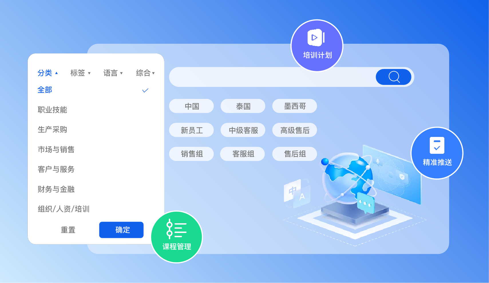 集團化培訓管理:支持總部統(tǒng)一發(fā)起培訓計劃,海外分支機構可結合本地需求提交細化方案,審核通過后系統(tǒng)自動分解實施,適配多層級管理模式;提供課程分類標簽體系,可按 “地區(qū)/崗位/業(yè)務線” 精準推送企業(yè)文化、產(chǎn)品知識等內容,避免信息冗余。