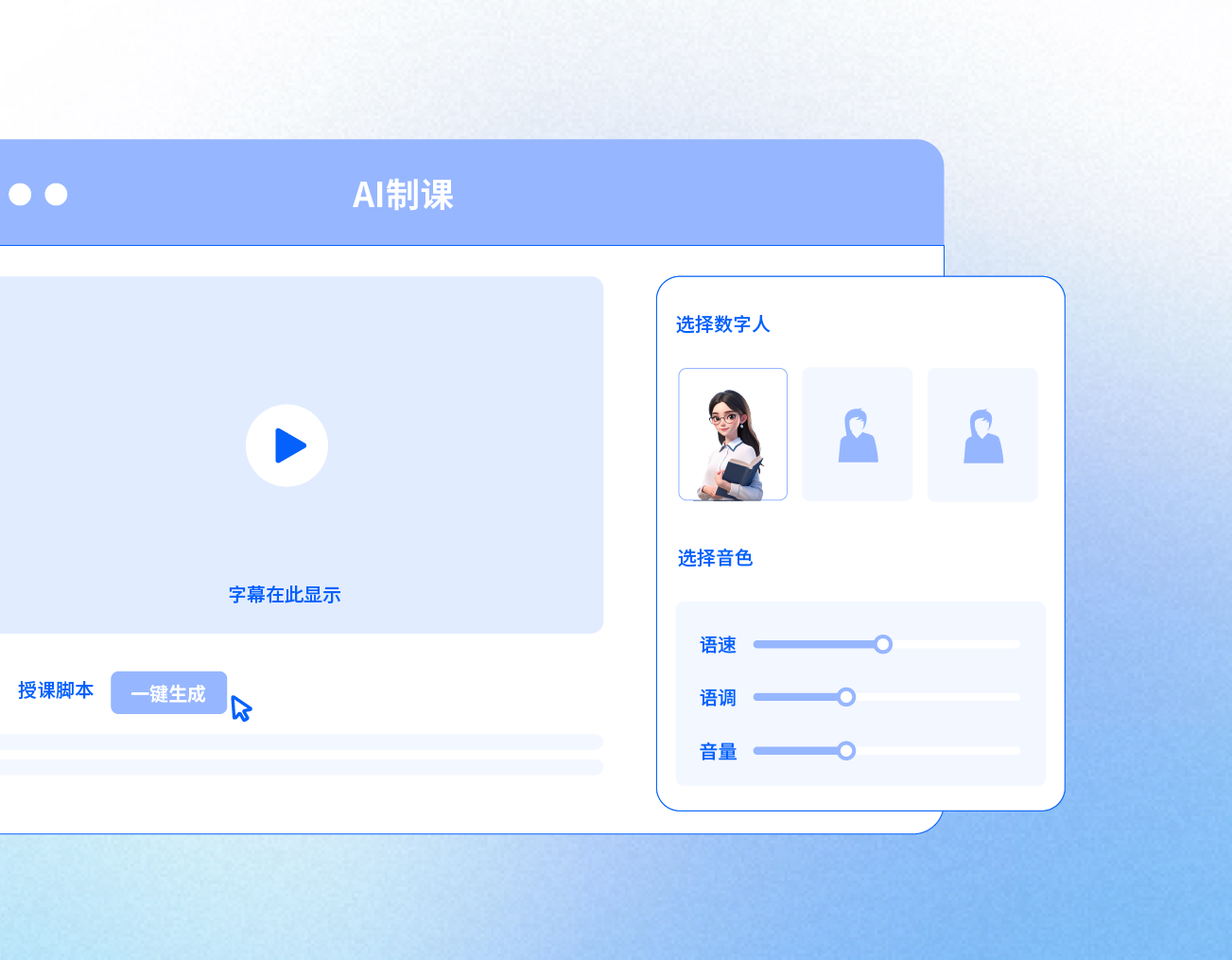 內(nèi)部專(zhuān)家沉淀知識(shí)及挖掘最新信息,智能解析文件和指令,一鍵生成口播稿,選擇場(chǎng)景、數(shù)字人,輕松制作課件視頻