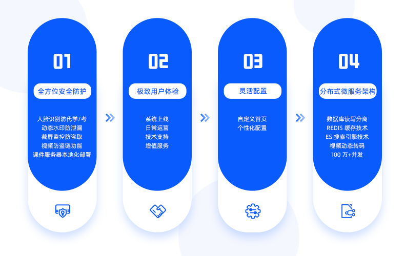 對(duì)外達(dá)到公安部最嚴(yán)格“三級(jí)等保”資質(zhì),杜絕外來(lái)入侵,對(duì)內(nèi)有人臉識(shí)別防盜用、動(dòng)態(tài)水印防翻錄、自動(dòng)截屏防非法操作、視頻防盜鏈,杜絕內(nèi)部泄密,更支持課件服務(wù)器本地化部署,讓您的課件安枕無(wú)憂。