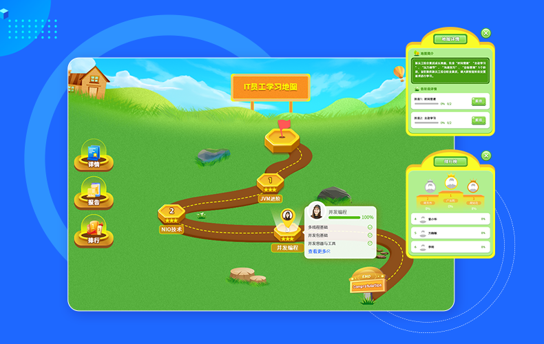 員工選課申請經(jīng)管理員審核通過后,系統(tǒng)將根據(jù)所選課程清單自動生成個人年度培訓計劃,員工將按照游戲化學習地圖的方式完成所有課程學習,學習地圖由多個階段組成,每個階段包含相應的課程和考試,各個階段需進行解鎖式學習,完成前一階段才可繼續(xù)學習下一階段。游戲化學習地圖將游戲闖關(guān)思維深度融合到學習場景當中,通過闖關(guān)式游戲體驗全面激發(fā)員工學習動能,利用數(shù)智化技術(shù)有效提高員工學習效率,讓員工在寓教于樂的數(shù)智化培訓方式中進行沉浸式學習體驗。
