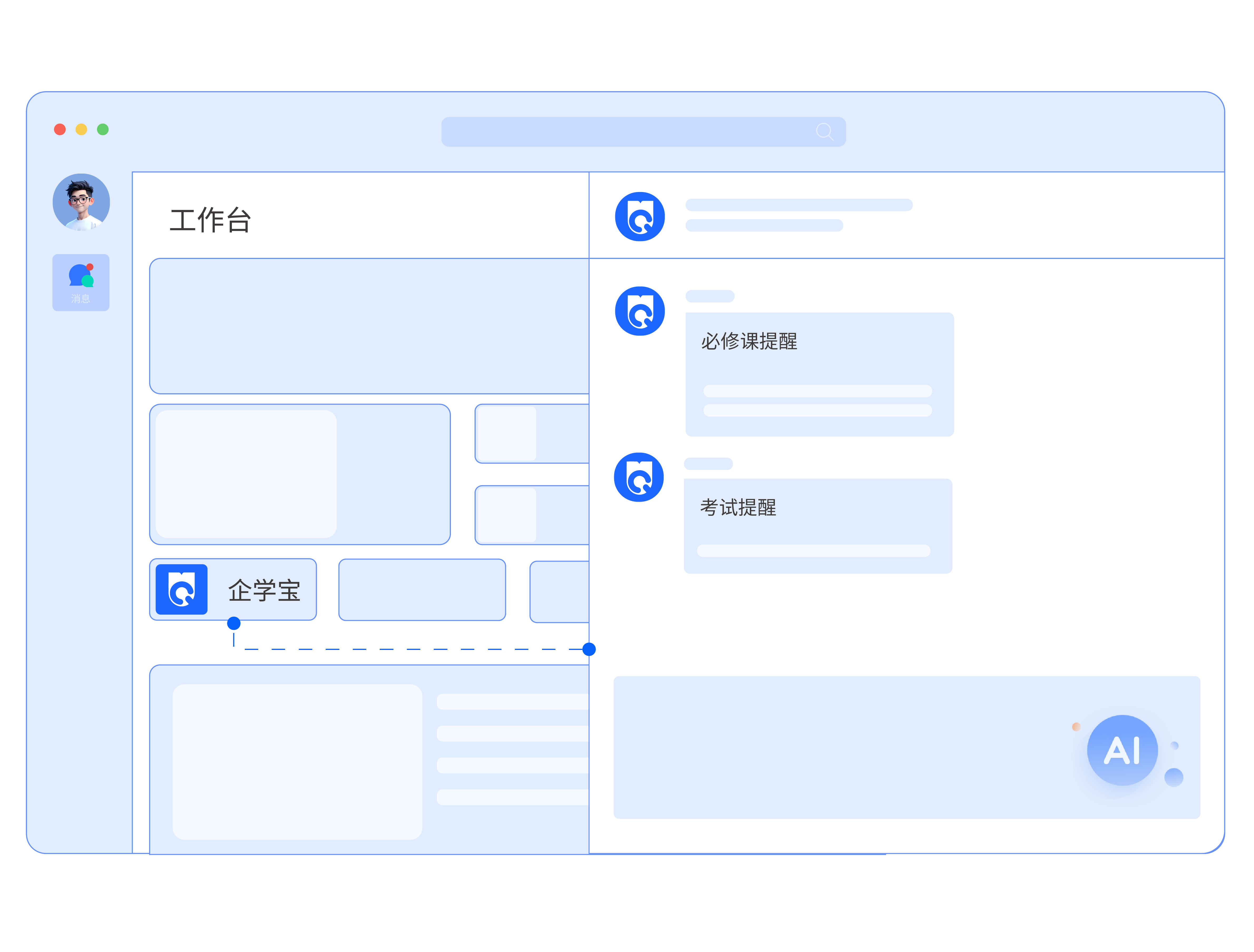 企學(xué)寶 AI + 培訓(xùn) 全鏈路應(yīng)用組合,覆蓋企業(yè)培訓(xùn)體系搭建全流程,精準(zhǔn)匹配培訓(xùn)實(shí)施管理的每一個(gè)智能化需求場(chǎng)景